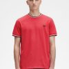 Legenda byloja, kad mūsų dvynių arbatpinigiai atsirado, kai pirkėjas iš lillywhites paprašė pridėti futbolo komandos spalvų prie Fredo paprastos spalvos teniso marškinėlių. tik mes naudojame arbatpinigius santykiu 5-4-4 ir tai yra mūsų DNR dalis. Sukurti su mūsų išskirtinėmis detalėmis, mūsų marškinėliai su įtemptu kaklu yra su dviem viršūnėlėmis ir siuvinėti pagal spalvą atitinkantį laurų vainiką. labai labai Fred Perry.